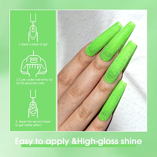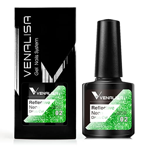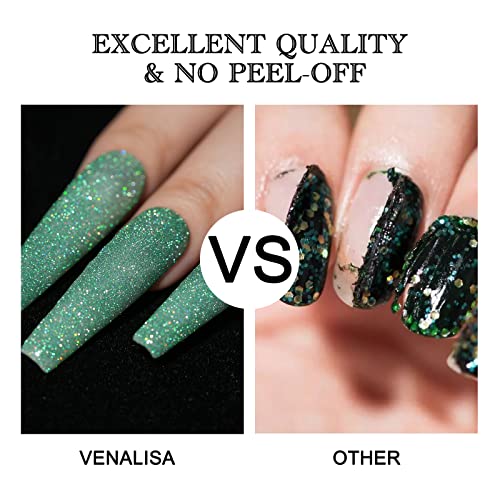 VENALISA UV Gel Nagellack Glitzer,Glitzer Gel Nagellack Neongrün Nagelgel Shiny Reflective Glitter Gel Nail Polish…