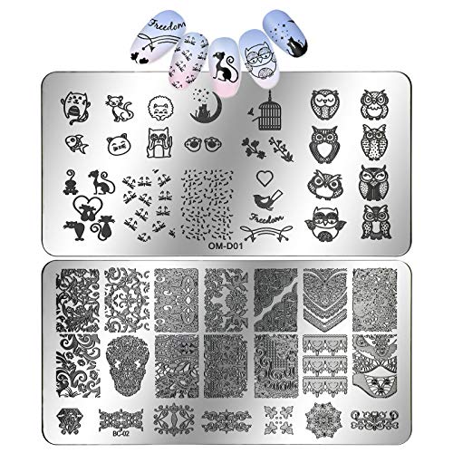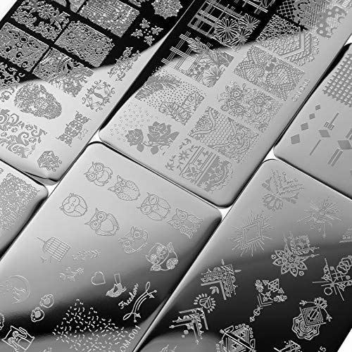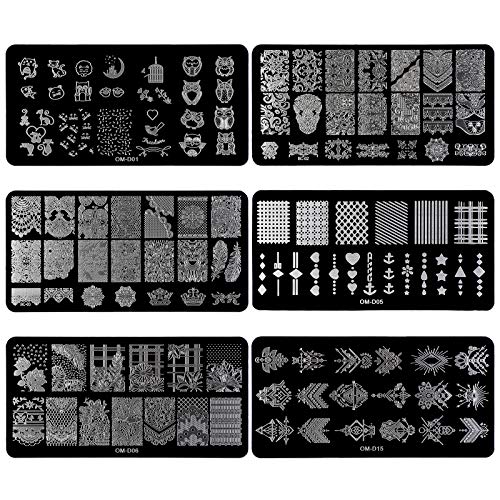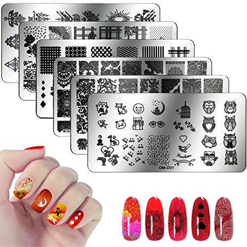 VETPW 6 Stücke Nail Art Stamping Templates Set, Nail Art Platten, Liebe Herz Eule Katze Mandala Blumen Lace Muster Nageldesign Maniküre-Druckwerkzeug Nagel Stempelplatten