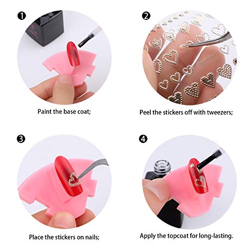 Einfach anzuwenden: Selbstklebende 3D Metallic Nail Art Decals, Verwenden Sie eine Pinzette (nicht im Lieferumfang enthalten), um sie zu schälen und an Ihren Fingernägeln und Zehennägeln zu verankern. Es wird fest auf Ihren Nägeln haften.