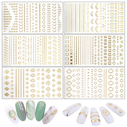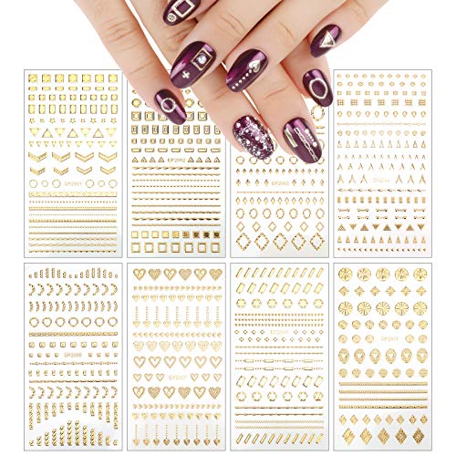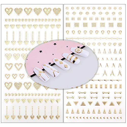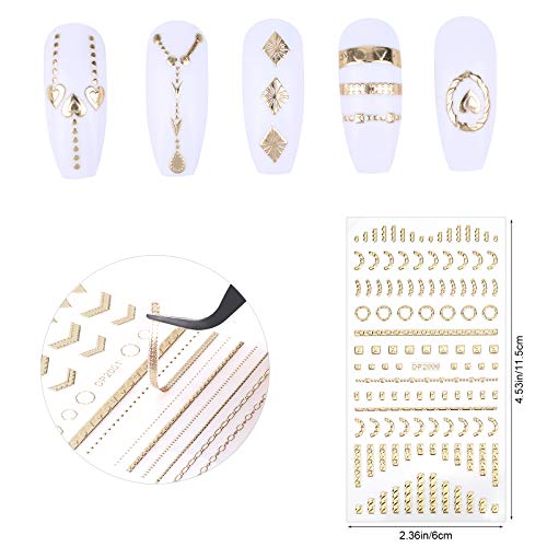 Exquisites Design und Reichlich Vielzahl: Sie entgegennehmen 8 Blatt Nageldekoration Aufkleber: Sterne, Metallkette, Herzen, Metall Linie, Drehstange, geometrische Muster. Diese Muster können leicht ein einzigartiges Nailart-Design erzeugen und Ihre Nägel stilvoller und professioneller machen.