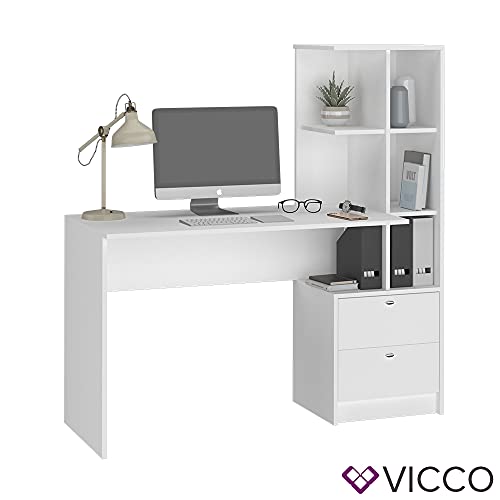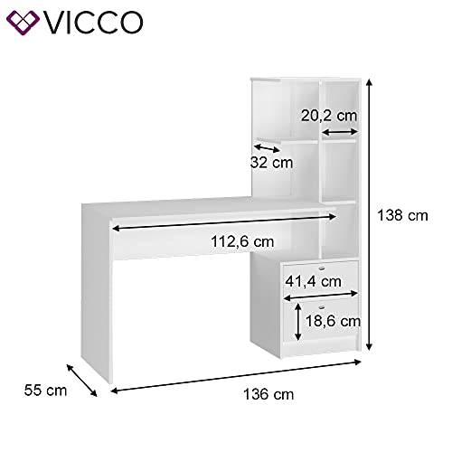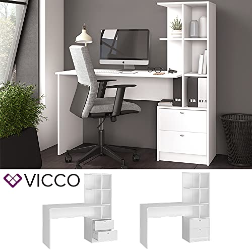 Vicco Schreibtisch Bürotisch Arbeitstisch Denton Weiß 2 Schubladen Ablage Fächer