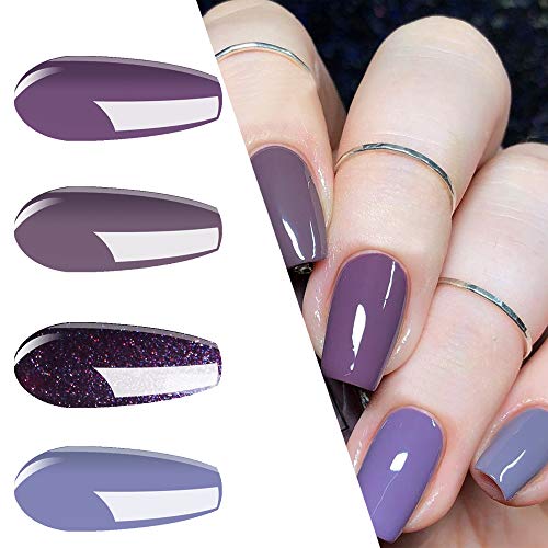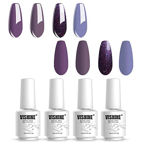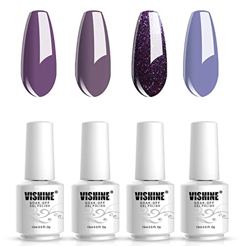 Vishine Semi Permanent Gel Nagellack – Soak Off Gel Nagellack Set 4 Farben 15ml Set Lila Lila Nail Art Set für Nägel