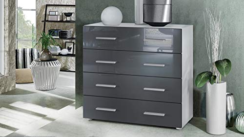 Die Kommode hat einen matten, melamin-beschichteten, Korpus in der Trendfarbe Weiß. Die Fronten bestehen die Gesamtheit MDF im Übrigen sind entweder in Hochglanz oder qua naturrealistischer Maserung, jeweils qua abgerundeten Kanten (ausgesprochen wichtig Statt die Sicherheit von Kindern usw.) abrufbereit.