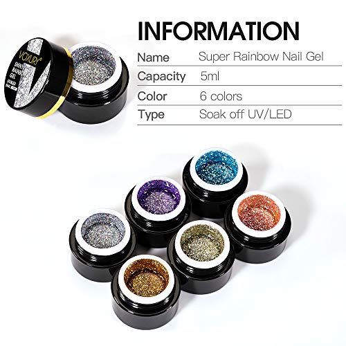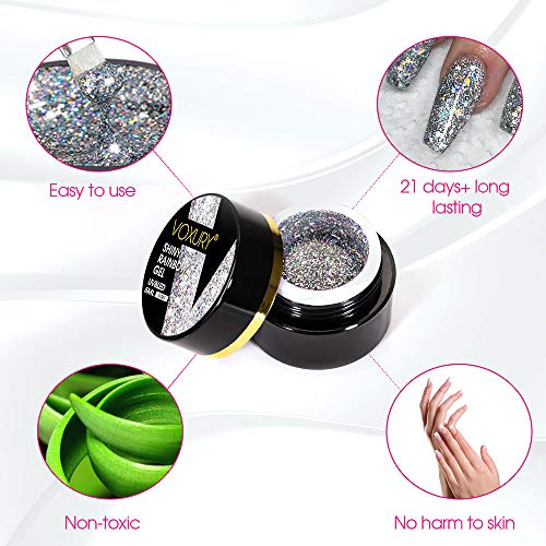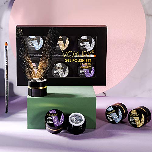 VOXURY Glitter UV Nagellack 5ml mit Paint Pen Kit, 6PCS UV-LED Gelpolierkollektion Nagellack-Kit Glitzer Gel Nagelgel…