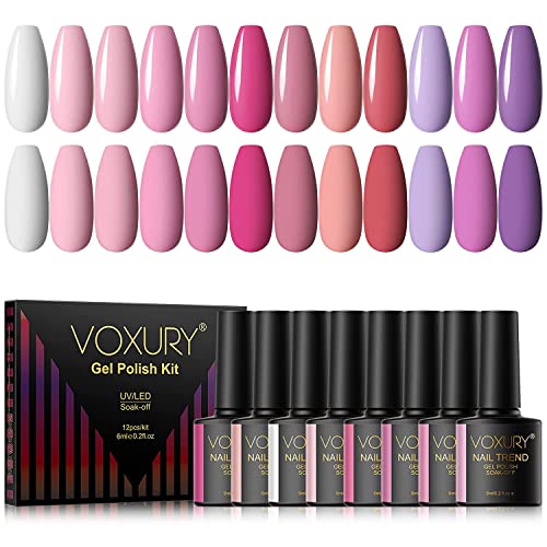 VOXURY UV Nagellack Set 12 Farben Weiß Rosa Lila UV Gel Nagellack Barbie Rosa Braun Shellac Gellack UV Nagellack…