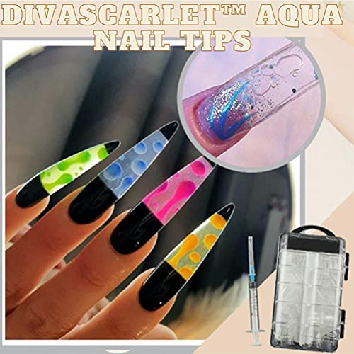 DivaScarlet Aqua Nagel Tipps Aquarium Nägel Kunst Tipps Klar Aquarium Flüssigkeit Wasser Nagel Spritze Mit Injektor falsche TippsSind o. k. für Nail Art Lernenden und Spezialisten für Nagelstudio und DIY Nail Art zu HauseSind o. k. für Nail Art Lernenden und Spezialisten, Angebracht für Nagelstudio und DIY Nail Art zu Hause