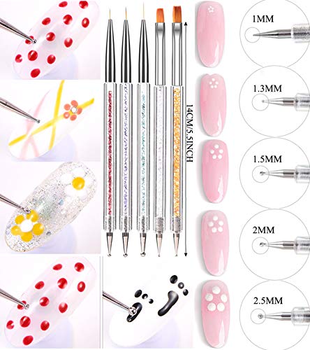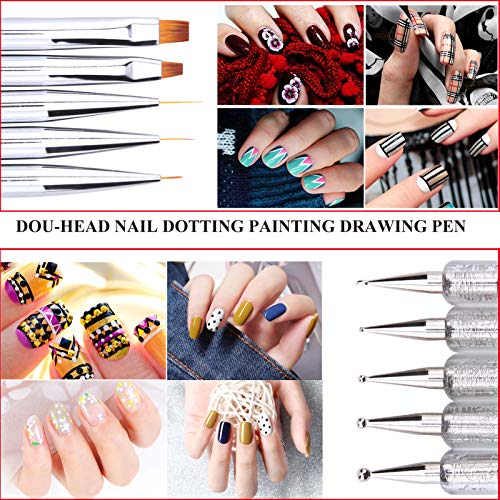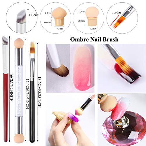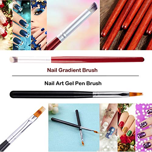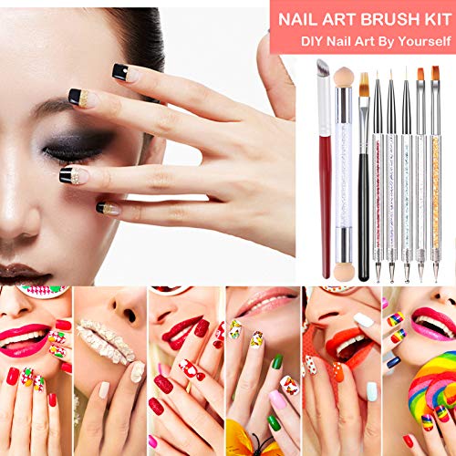 Wukalaka Nail Art Pinselset Ombre Nailbrush Dotting Pen Malen Zeichnen Nail Art Liner Pinsel Nagel Gradient Schwämme Pinsel mit Diamant Glitter Griff Acryl Nagel Kit für UV Gel Nail Art Design