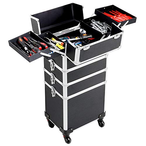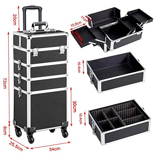 4 in 1 Kosmetikkoffer Trolley: Nicht mehr da Leichtmetall und Kunststoff gefertigt. Enthält 3 herausnehmbare Fächer, 1 großes Fach und 1 Schublade anstelle organisierte Aufbewahrung