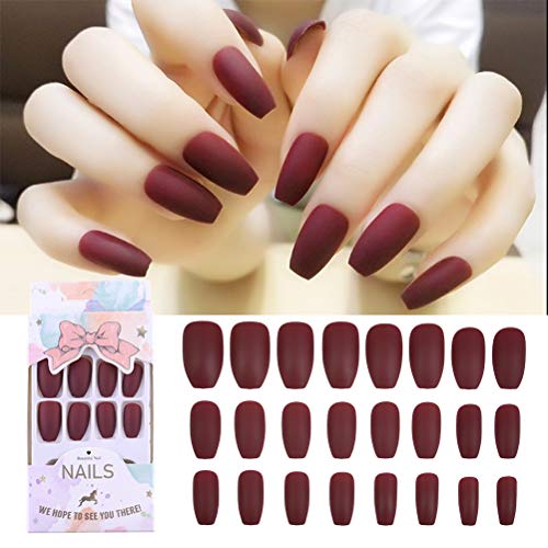 【Verpackungsinhalt】24 Stufe matte falsche Nägel in verschiedenen Größen, Saubere Baumwolle, Nagelkleber, Nagelfeilen und Holzstab, ausreichende Menge und Werkzeuge können Ihre täglichen Anforderungen an dekorative und DIY Nagelkunst zu Ende führen.