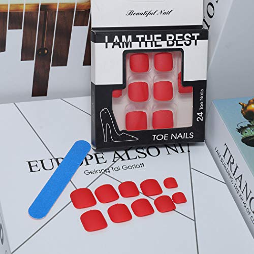 1 Set bestehend aus 24 künstlichen Fußnägeln und 1 Klebeaufkleber, 1 Mini-Maniküre-Stick (kein Flüssigkleber)