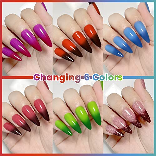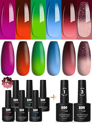YTD Likomey UV Nagellack Farbwechsel Thermo Set,8 Pcs 6 Farben Mit Base und Top Coat Kit,Soak Off UV Chamäleon Shellac…