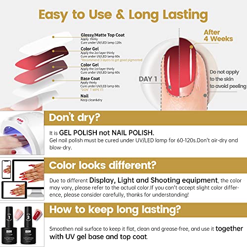 ➌【Gesund und umweltfreundlich】Unsere Gelpolituren werden jeglicher natürlichen Harzen hergestellt und sind ungiftig, nicht reizend und geruchsarm, damit Sie sich keine Sorgen machen müssen. Die schönen, lang anhaltenden Farben sind perfekt für Do-it-yourself-DIY-Nailart-Fans.