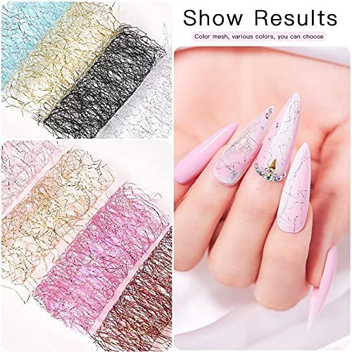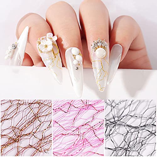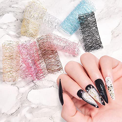 PAKET – Dieses 3D-Mesh-Nagel-Aufkleber-Set enthält 6 Blatt Gold-Silber-Netzlinie Nagelabziehbilder Schmalzig-Mesh-Aufkleber