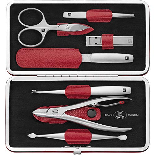 ZWILLING Maniküre Pflege Set, 7-teilig, Asian Competence, Leder, Geschenkset, Premium, Rot